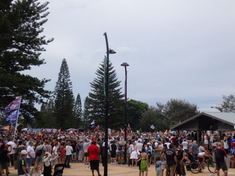 THOUSANDS of anti-vaccine mandate demonstrators flooded the Gold Coast on Saturday, filling up a local park and causing a traffic jam reaching into nearby suburbs. The Millions March Against Vaccine Mandates and Passports attracted an estimated 10,000 or more to Broadbeach – ten times the size of similar rallies midway through the year.