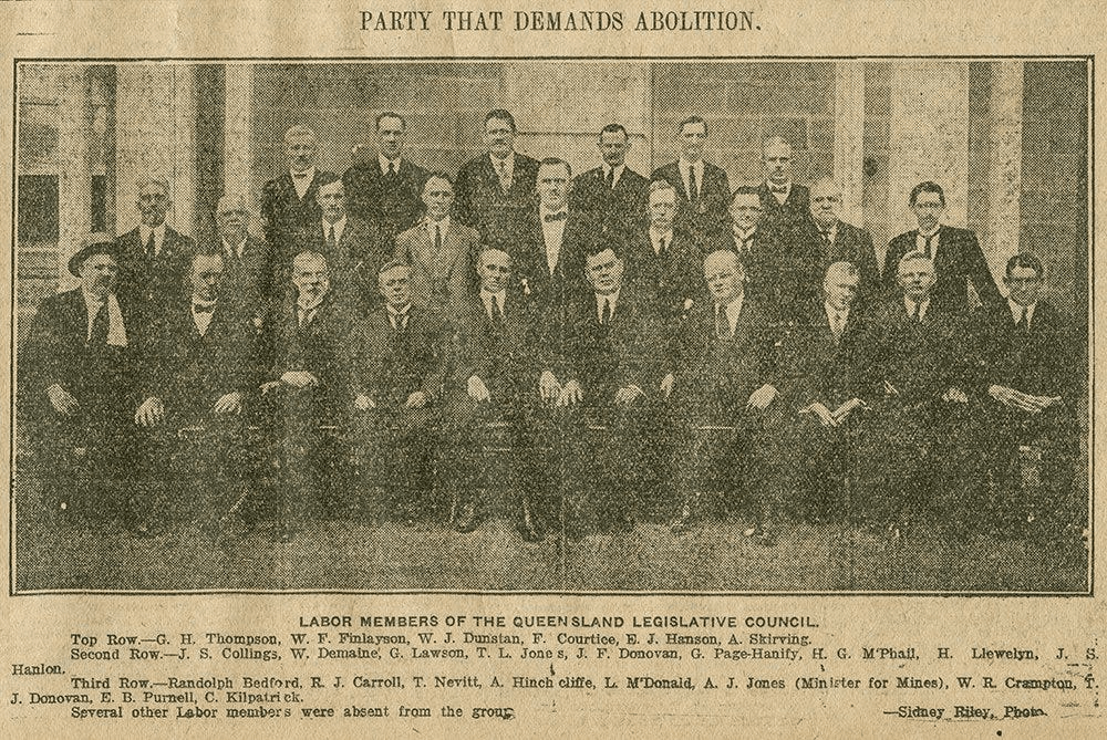 We all know that Queensland’s Legislative Council was abolished by the Theodore Labor Government in 1922, in a surreptitious way. It denied a people’s referendum of 1917 that supported the chamber’s retention. It was motivated by Labor’s ideological antipathy to upper houses that were seen as restraining their wide-ranging, and sometimes excessive policy platform. In Queensland, there was also local factors like the Legislative Council’s scrutiny of certain then Labor government initiatives that were later to prove to have involved Theodore and other leading Labor figures.