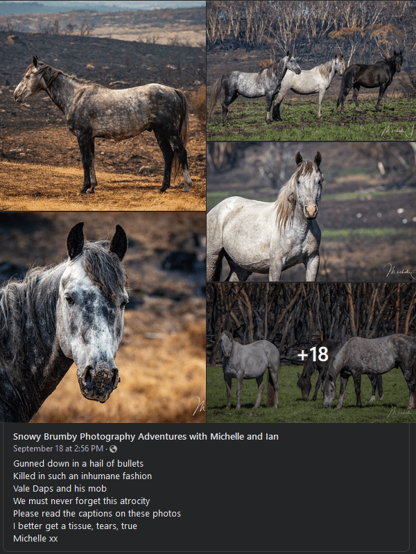 It is absolutely sickening how these horses where shot under the guise of being within the parameters of the management plan. No trapping in the area has been recently attempted, there is ample old trapping sites that could have easily been reused so absolutely no excuse by Parks to claim “Last resort”.