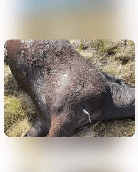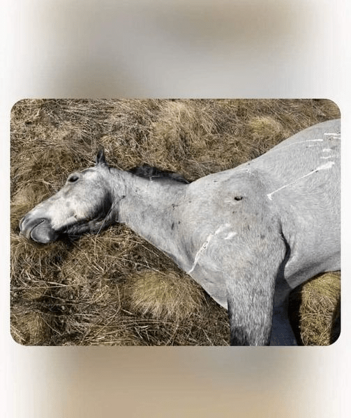 An entire herd of 11 horses, including a number of heavily-pregnant mares, were left to slowly bleed to death after an on-foot shooting believed to have occurred last Sunday.