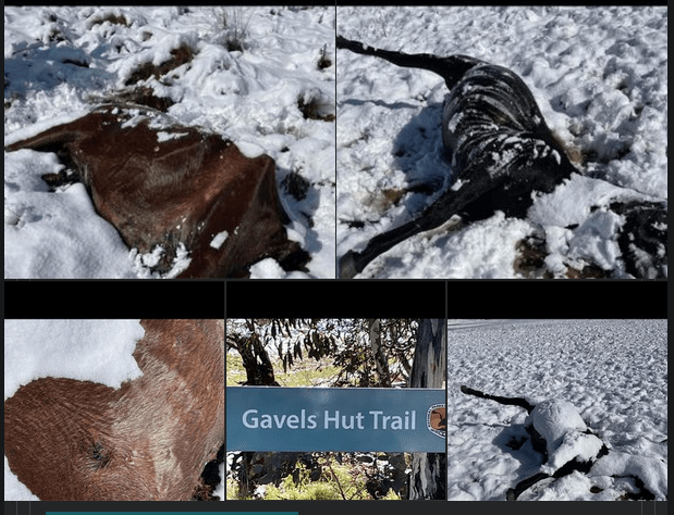 SMBSMG are reporting more brumbies that have been shot at Nungar near Gravels Hut 4 smbsmg Members hiked in last Saturday after being told there were shot horses