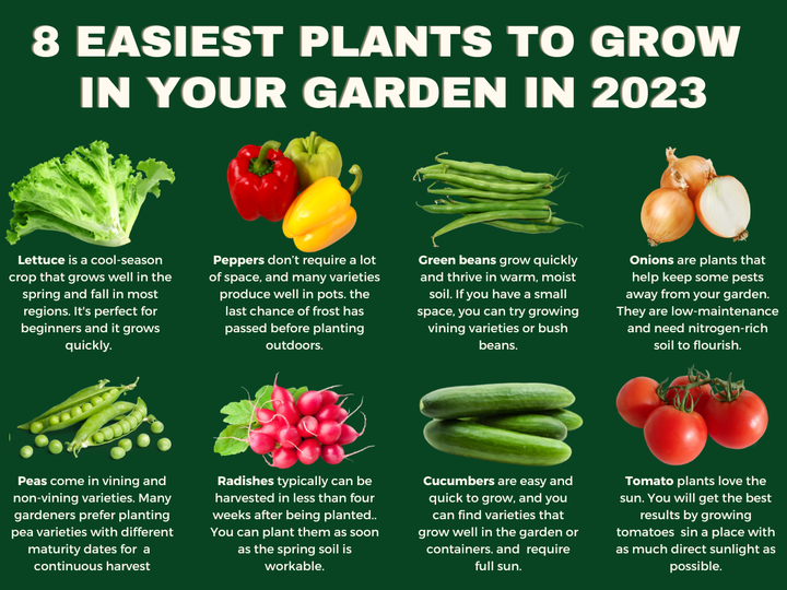 Cucumbers: they do well indoors in a deep, hanging basket or large container. Provide the plant with at least 8 hours of sun each day and harvest when the plant reaches 10 inches in height.