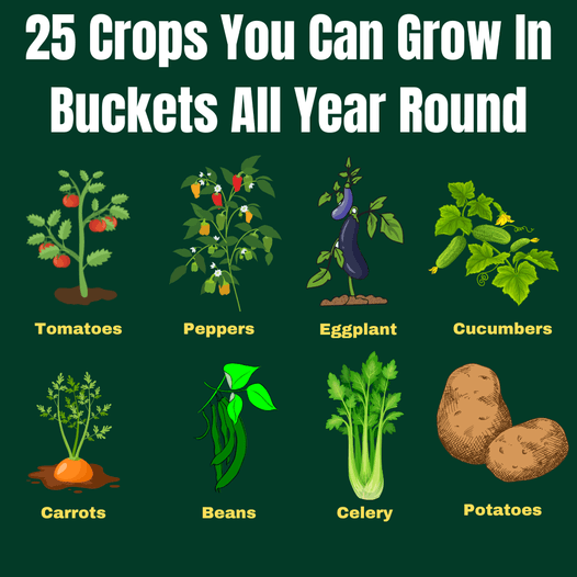 Peppers: When placed indoors, peppers can be grown year-round. Planting peppers in a portable bucket allows you to move them around to aid with lower sunlight during winter months.
