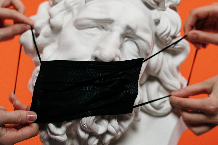 I attended a panel discussion in a theatre recently and a young woman was sitting inside, alone, wearing a mask. A stranger seated three chairs apart from the masked woman leapt over and asked her if she would feel more comfortable if she, too, put on a mask: ‘I have one in my bag! I can put it on!’ The masked woman assured her this would not be necessary. ‘Oh but we still must be so careful!’ the stranger cooed.