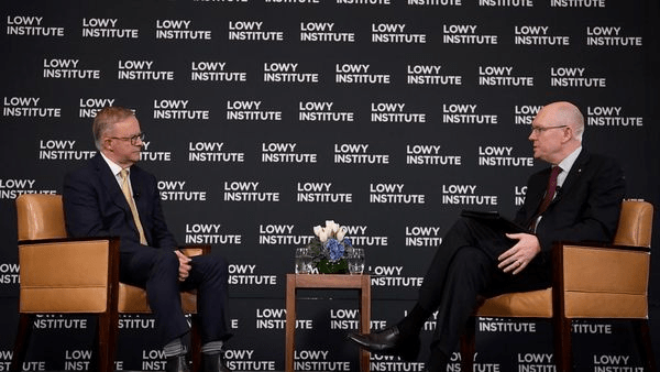 2/ Anthony Albanese speaks with Michael Fullilove at the Lowy Institute, in Sydney.
