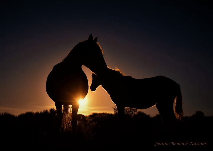 “Following Justice’s Journey.” As the brilliant sun slowly sank in the western skies, I saw Justice on top of a mountain, looking down into ribbons of light in the valley below as his mom sweetly nuzzled his fuzzy mane. The light surrounding them was captivating.