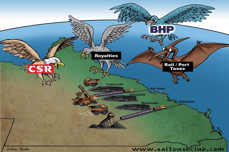 The Queensland government vultures also came along demanding their booty from all the coal companies. I spent ages battling Queensland government officials over excessive rail freight, increased royalties, and soaring port charges.
