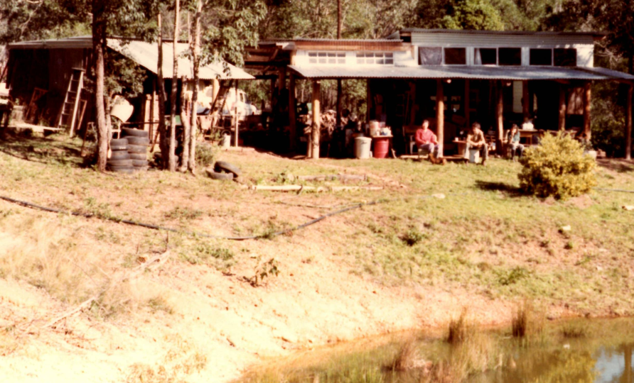 But both Judy and I loved the bush. We bought 160 acres of scrubby bush near Fernvale adjoining a national park filled with lantana, wait-a-while, and dingoes. Then, without any plans, approvals, electricity supply, or registered builders, we designed and built our own pole house. Using only an axe, chain saw, petrol-powered auger, crowbar, shovel, and a little old grey Fergy tractor, we built with second-hand corrugated iron walls and windows from demolition yards. Then we found and installed an old wood stove like my mother had.