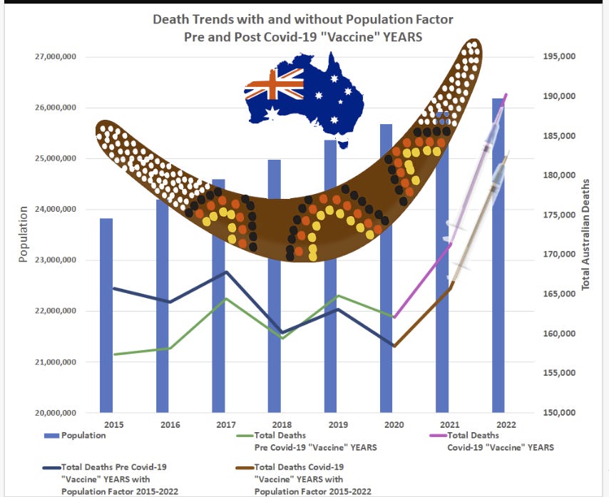 Australian Increased Deaths and Death Rates and the temporal relationship with the injection of the mRNA vaccines.