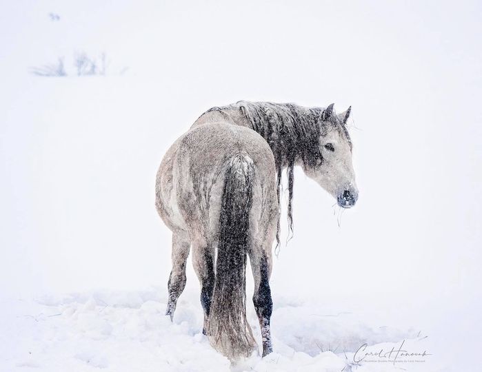 Paleface digging through nearly a metre of snow looking for a green pick!! Please dont feel sorry for them, He is in fantastic condition and in no threat of starving. This is their life, their environment and I can assure you that the Brumbies handle it way better then what we think. Yes the elderly can lose weight and not fare as well but isnt that true in any environment, domestic or otherwise. Photo Copyright to Carol Hancock