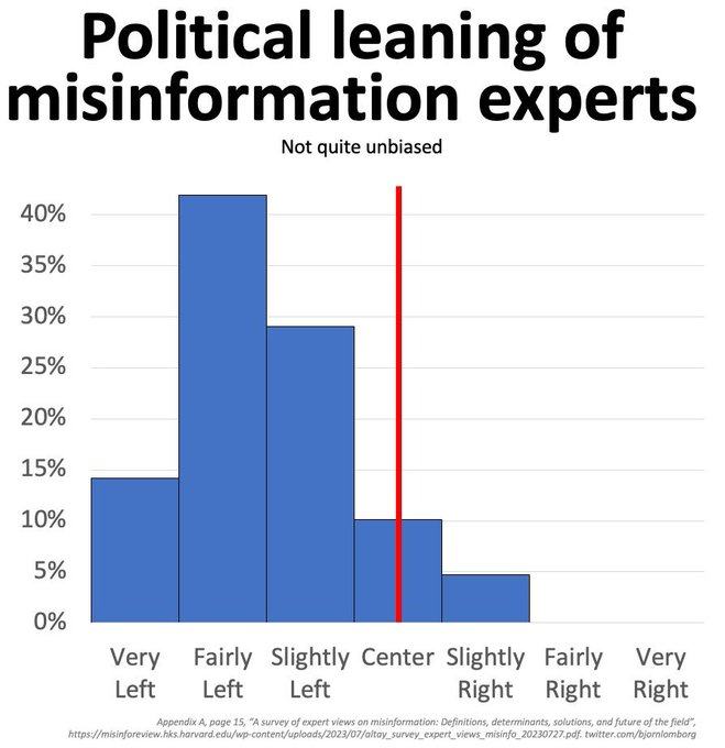 Amusingly, the policy worship of self-proclaimed fact checkers coincides with a recent academic review of the discipline internationally. The leading international journal of ‘misinformation studies’ published a survey of 150 of its practitioners but omitted to note one interesting finding buried in its own statistical appendix: ‘fact checkers’ swing hard left. Bjorn Lomborg charts the pattern.